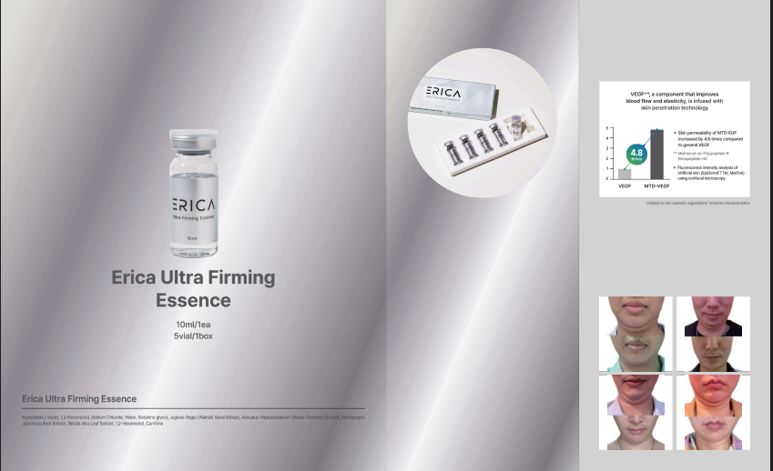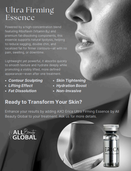 Erica Ultra Firming Essence is a high-concentration fat dissolve solution that combines Riboflavin and other premium ingredients that create fat decomposition by accelerating metabolism of fat cells.
